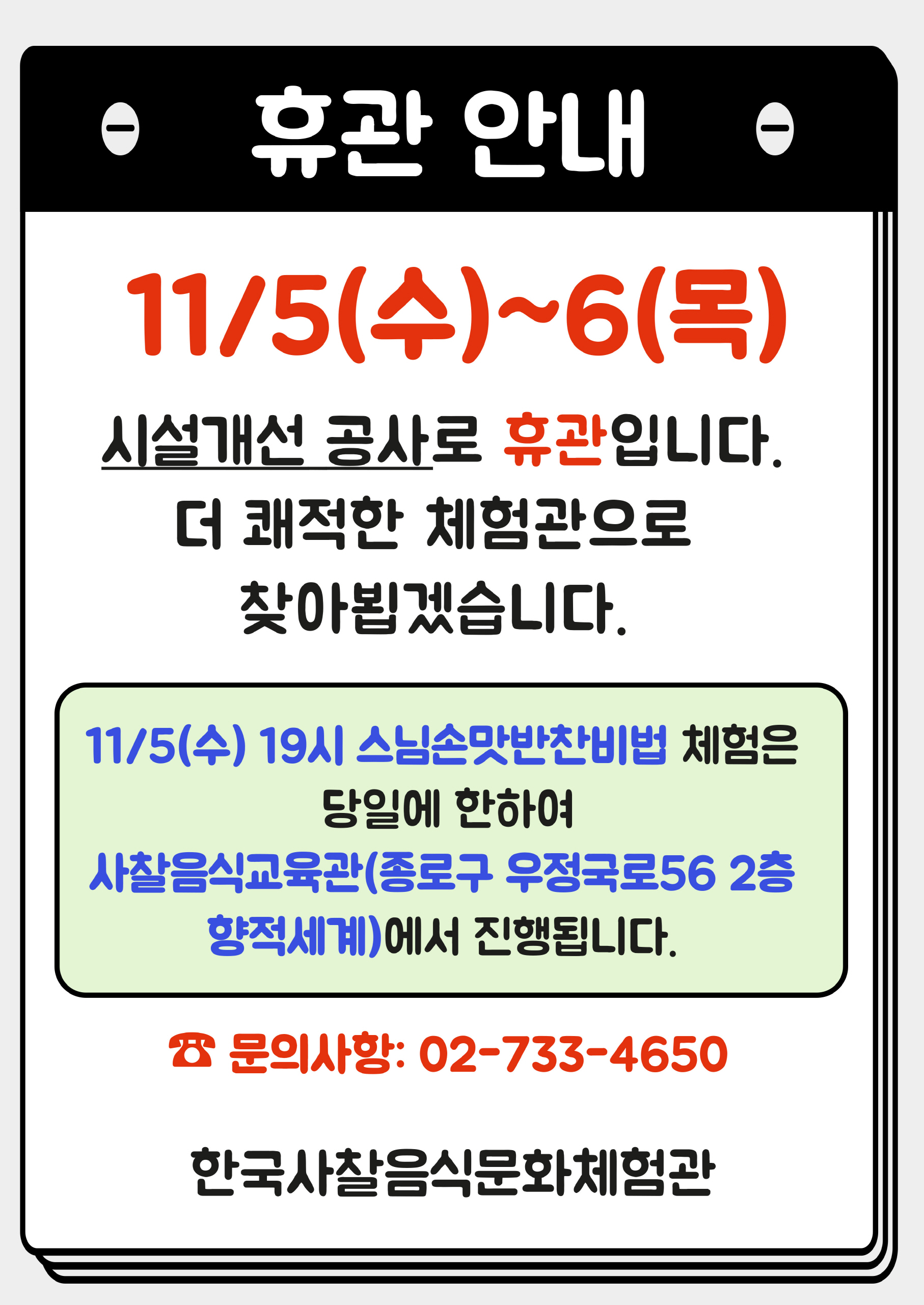 · 화~일요일 : 오전 9시~오후 6시