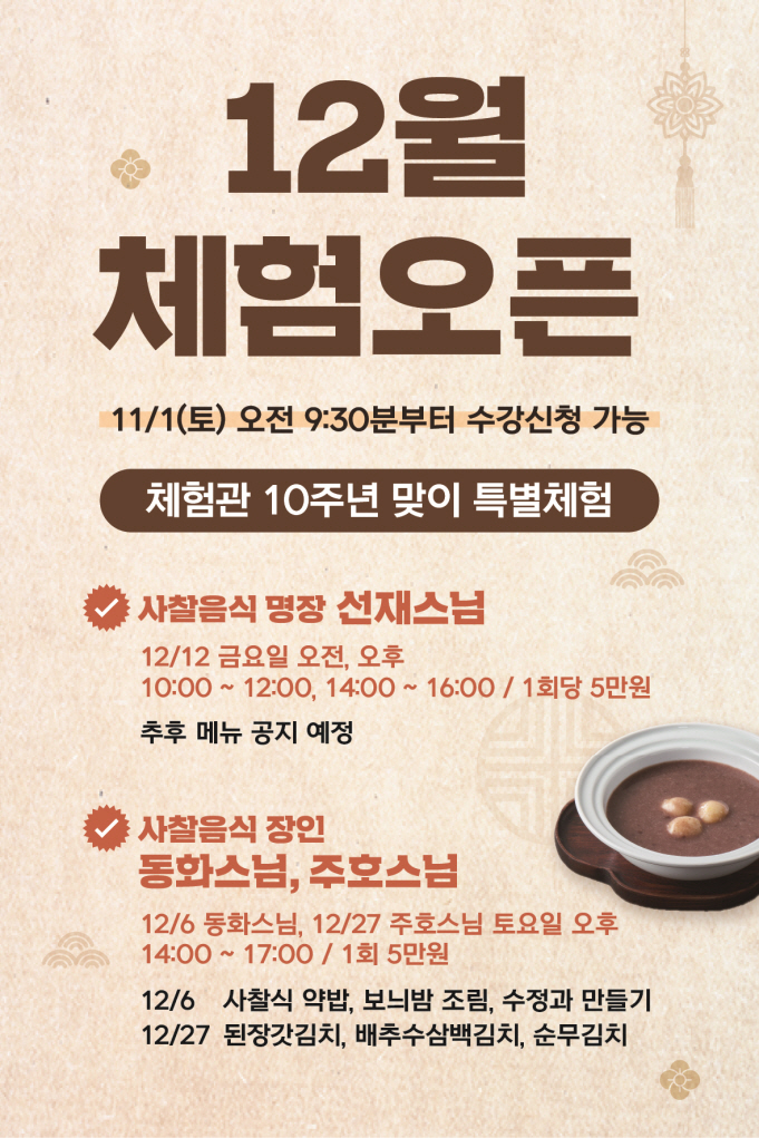 11월(화) / 사찰음식 한그릇 / 10:00 ~ 11:30